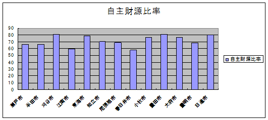 | 3 | 自主財源比率 | 66.29 | 66.49 | 80.59 | 59.06 | 78.86 | 70.35 | 68.91 | 57.93 | 76.24 | 81.11 | 76.05 | 68.16 | 80.01 |