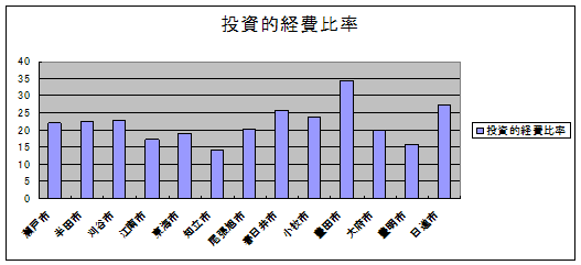 投資的経費比率 公共施設などの市の財産として将来残るものに支出される経費の、歳出決算額に占める割合をいい、数値が高いほど歳出の自由度が増すことを示す。 |