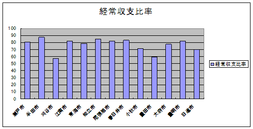 | 8 | 経常収支比率 | 80.4 | 87.7 | 57.8 | 81.9 | 78.8 | 85.3 | 82 | 82.9 | 71 | 59.5 | 77.7 | 82 | 70.3 |