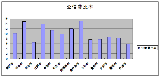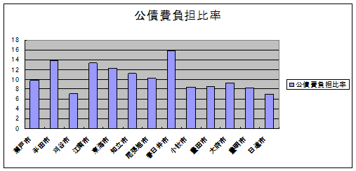 | 10 | 公債費負担比率 | 9.79 | 13.89 | 7.03 | 13.33 | 12.23 | 11.14 | 10.18 | 15.78 | 8.41 | 8.53 | 9.29 | 8.27 | 6.97 |