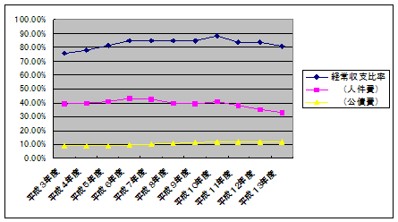 | 経常収支比率 | 75.60% | 77.90% | 81.10% | 84.60% | 84.70% | 84.80% | 84.50% | 87.80% | 83.30% | 83.50% | 80.40% |
