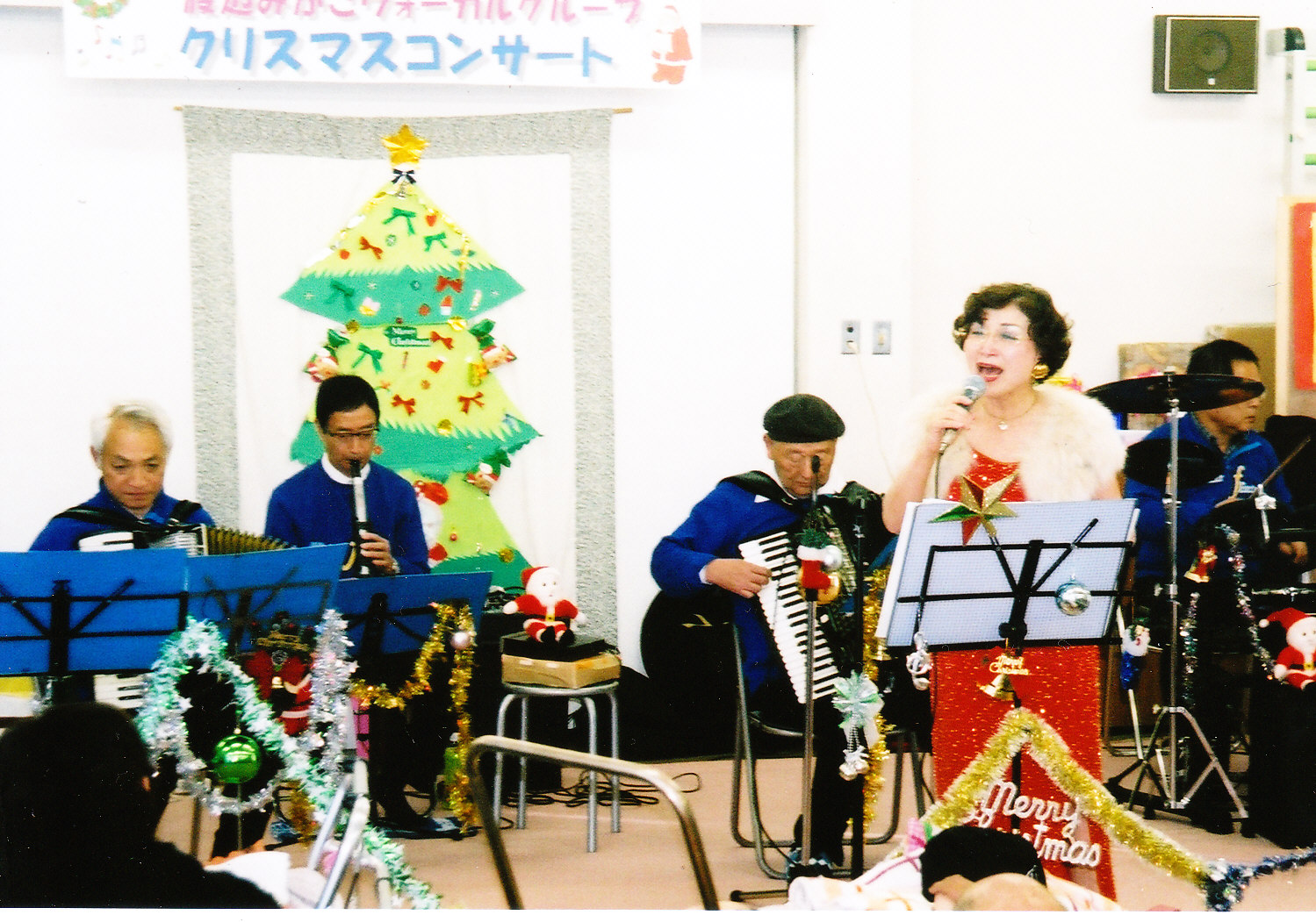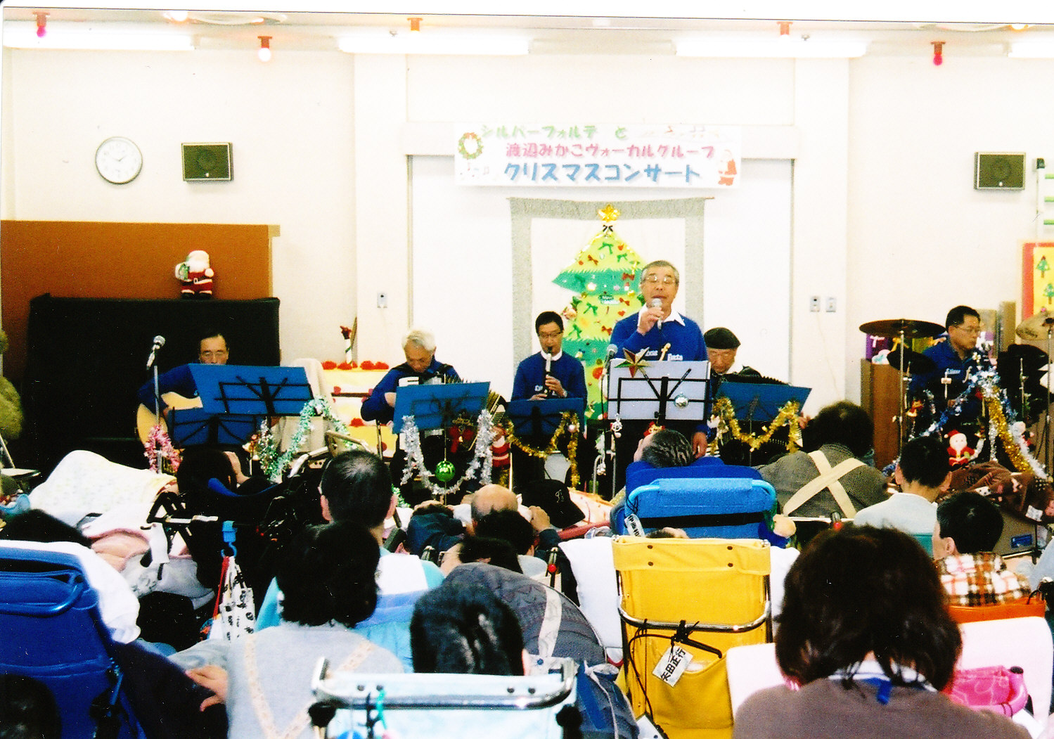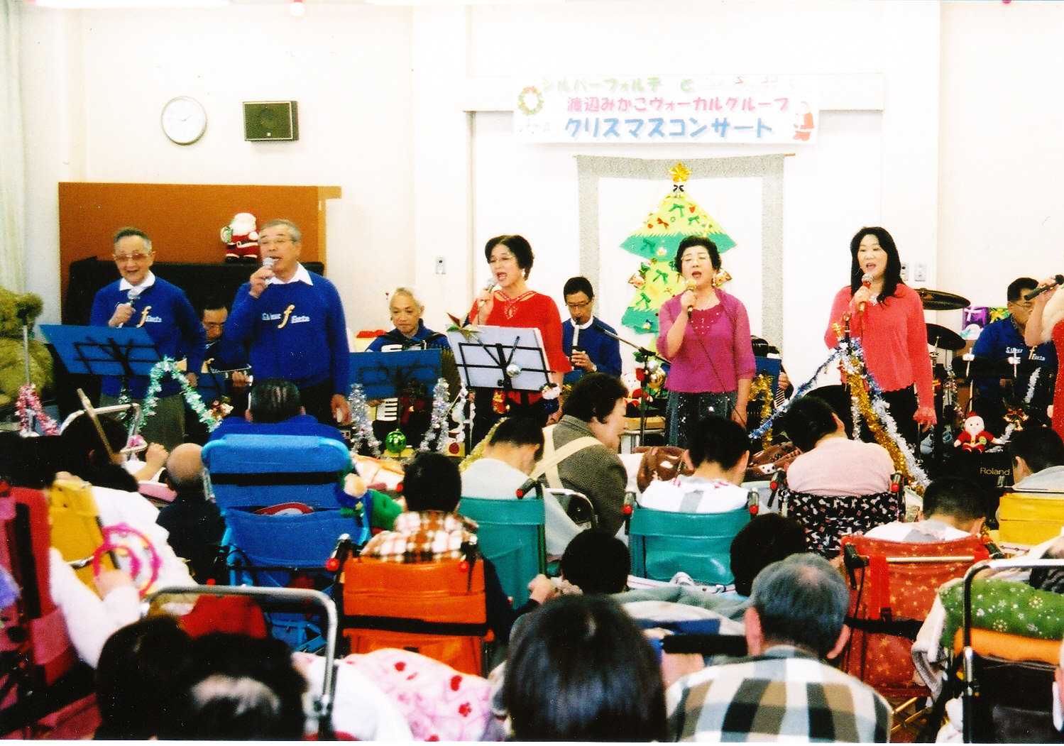 毎年、訪問しています。懐かしい音楽を演奏すると、利用者の皆さんが元気よく大声で歌っていただけます。
