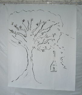 みんな酒瓶の取っ手の部分に手を添えて(右画像の右側の写真のように)撮影されてました。 |