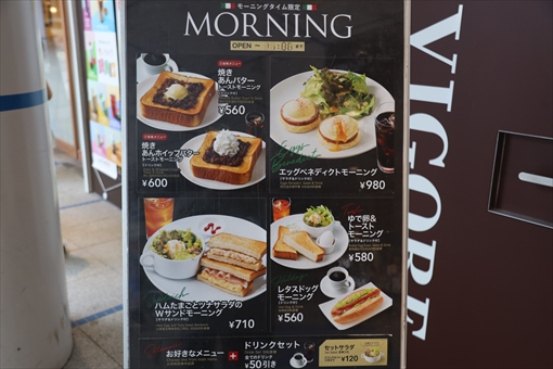 ▲8月17日(日)、ヴィゴーレのモーニングメニューは6種類