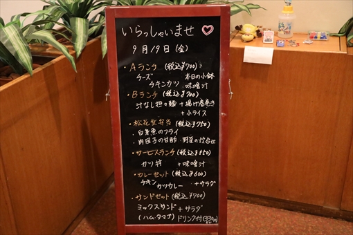▲9月19日(金)、愛知県議会議事堂喫茶室、今日のメニュー