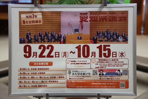 愛知県9月定例県議会が9月22日(月)に開会。総額186億7700万円の