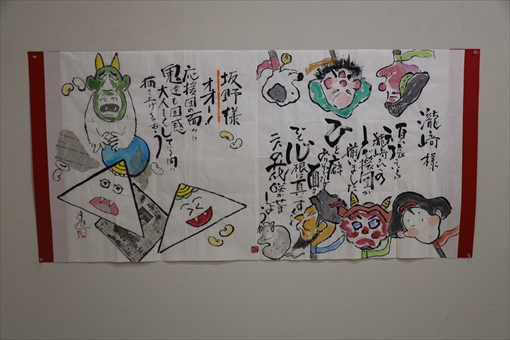 開催されています。大きさも内容も多彩な、ほのぼのとする絵手紙展です。瀧