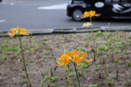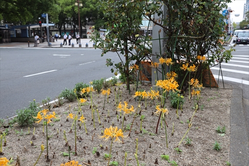 栄の広小路通を、黄色の彼岸花が彩っています。黄色の彼岸花が植えられてい