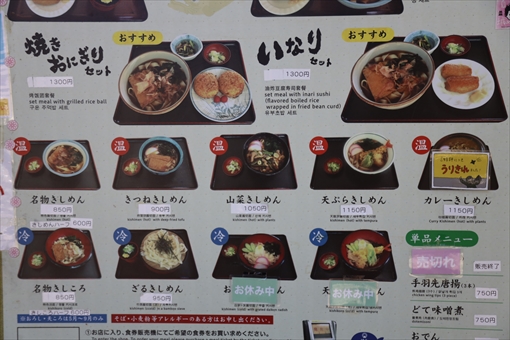 ▲10月6日(月)、名古屋城「きしめん亭」の、メニュー