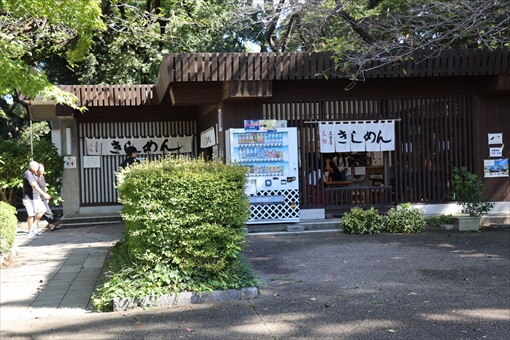 秋まつり開催中の名古屋城「きしめん亭」で、冷たい出汁のきしめん「きしこ ろハーフ」をいただきました。鰹だしのしっかり効いた冷たい出汁に、麺はと ても喉越しのいいうえにコシがあります。具は、ワカメ・花かつお・油揚げ・ ネギとシンプルなものです。小腹を満たすにはちょうどいいメニューのハーフ、 暑さがぶりかえした今日、重宝します。(2025年10月6日)