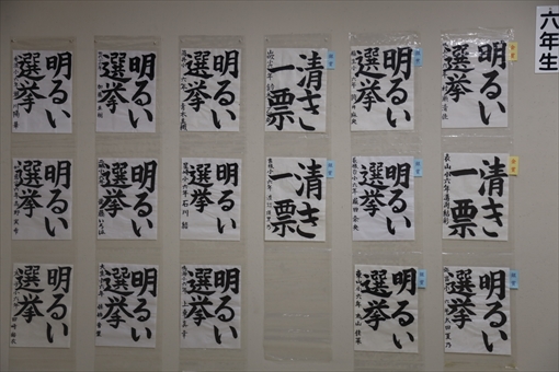 ています。作品は、小学生・中学生・高校生による選挙ポスター、選挙書道作