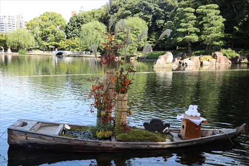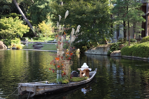 | 徳川園で浮かぶ、月見飾りの和舟 |