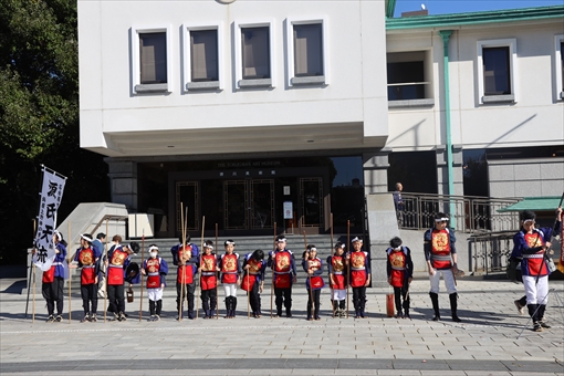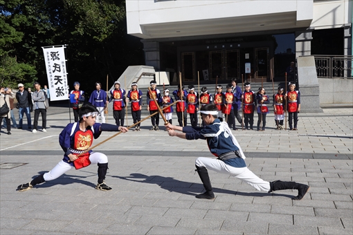術館前広場では、棒の手の演技が披露されました。披露したのは鍋屋上野町源