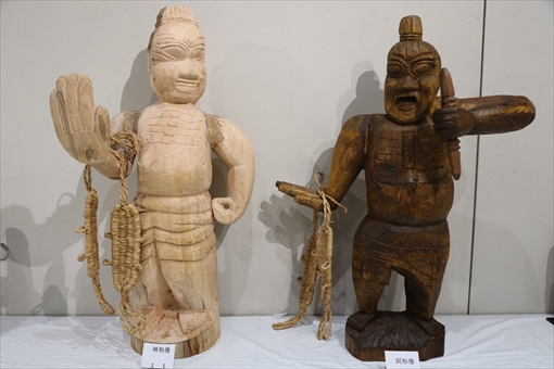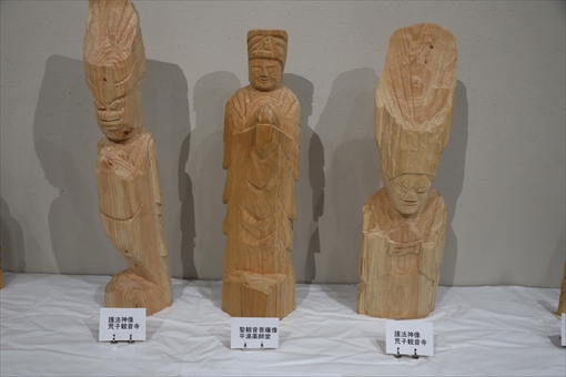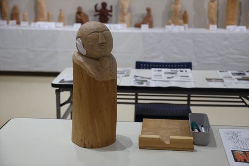 り、円空仏の彫刻を楽しんでいるグループ。今回は約100点の作品が展示さ