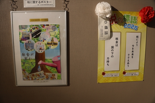 示されています。名古屋中税務連絡協議会主催で、展示されているのは税に関