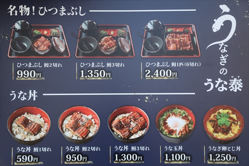 「うなぎの うな泰(やす)」 1.メニュー ひつまぶし(鰻2切れ) 2.料金 990円 3.場所 名古屋市中区錦三丁目22-10 4.電話 052-951-5151 5.営業時間 11:00〜21:00