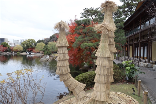 でこもがかけられ、日本庭園に風情のある冬景色を演出しています。徳川園で