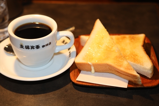 「支留比亜珈琲店 徳川本店」 1.メニュー モーニング 2.料金 520円(コーヒー+トースト) 3.場所 名古屋市東区徳川2-12-8 4.電話 052-935-6128 5.営業時間 7:00〜17:00(火曜休、モーニングは午前11時まで) 6.品質 料理:★★★★☆、接客:★★★☆☆、店舗:★★★☆☆