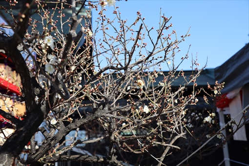 た、山田天満宮では拝殿前の白梅が開化。合格祈願に訪れた方など、参拝客を