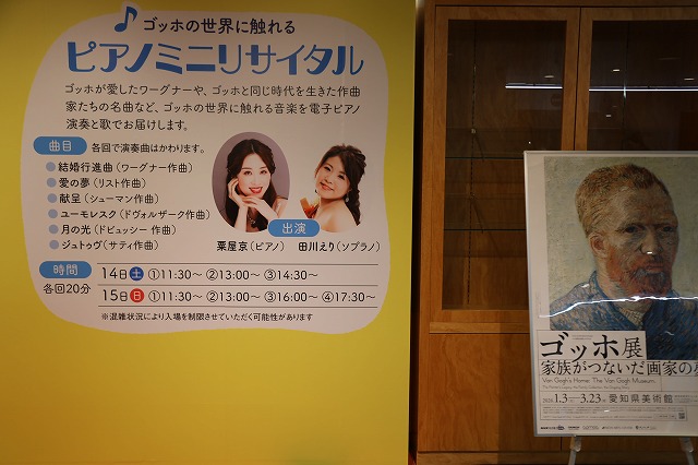 楽を電子ピアノ演奏と歌で楽しめる企画もあります。ゴッホをまるっと楽しむ