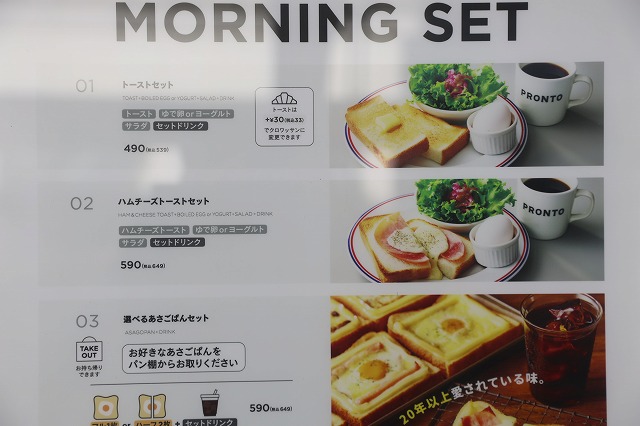 ▲2月22日(日)、プロント 名古屋栄店の、モーニングのメニュー