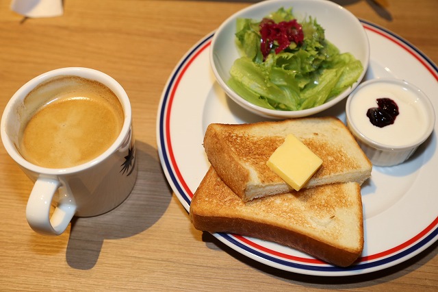 栄にオープンした、プロント名古屋栄店で、モーニングをいただきました。プ ロントのモーニングは3種類ありますが、トーストセットを選択。トーストセ ットは、トーストにゆで卵かヨーグルト、ミニ野菜サラダにコーヒーがついて 539円です。(2026年2月22日)
