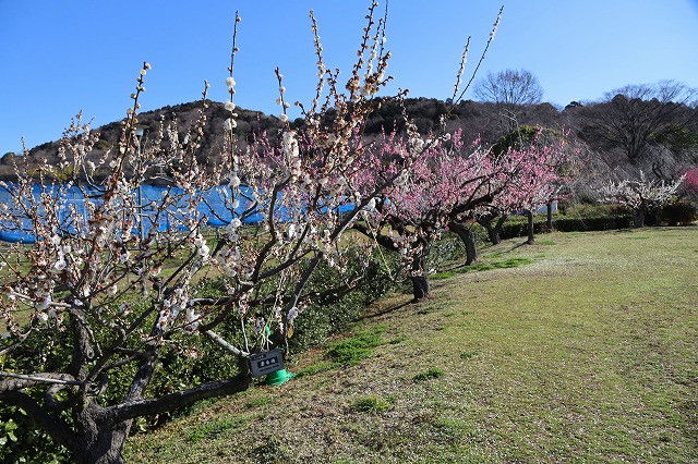 クで、梅の花がが見ごろを迎えています。東谷山フルーツパークには、白梅・