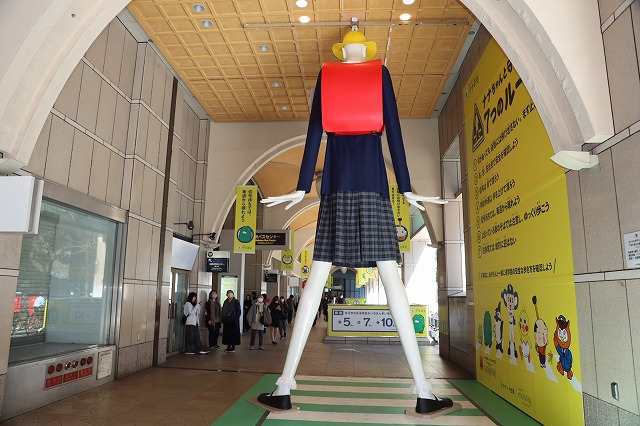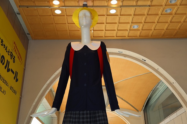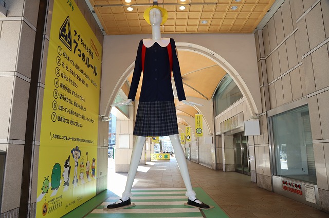 名古屋駅前のナナちゃん人形が、7歳の小学生に変身。赤いランドセル、黄色