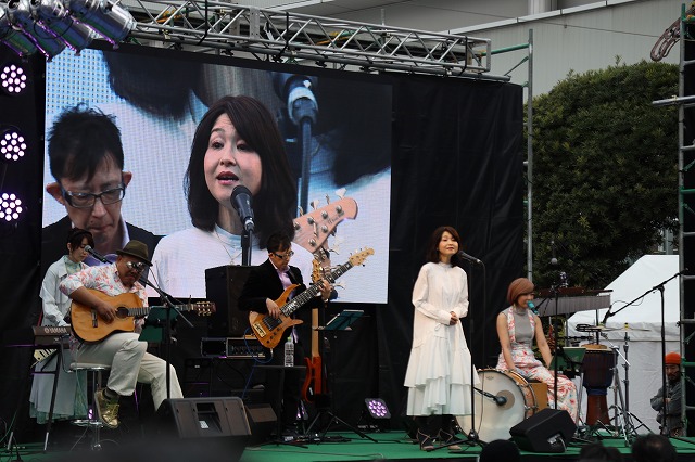 ステージでは、被災松カホンを奏でるコンサートなどが開催され、会場には、