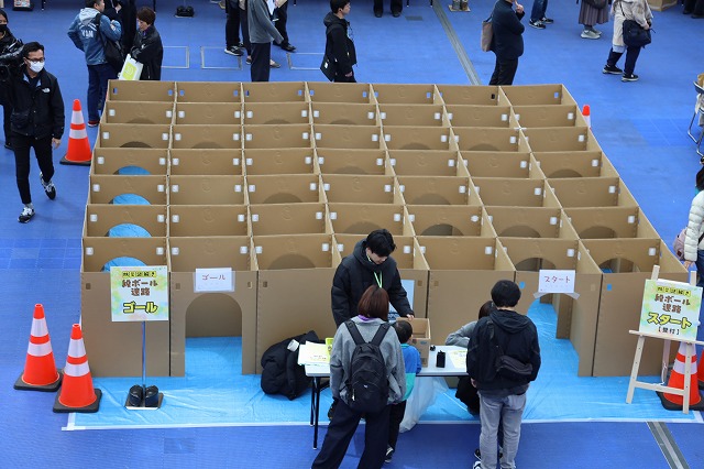 ダンボール迷路とクイズを組み合わせて防災を学ぶ企画も。 (2026年3月20日) |