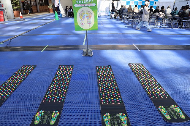 もみ×コミュニケーションの「肩もみ二ケーション」や足ツボマットで完走目