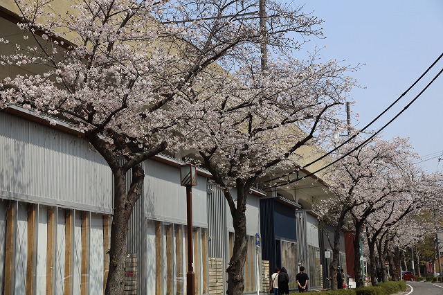 桜(ソメイヨシノ)並木が、見頃になっています。花咲くまちの商店街「SAKUMA