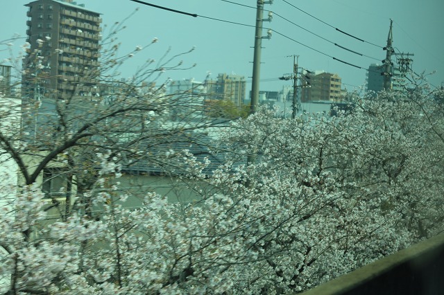 駅〜尼ケ坂駅〜森下駅〜大曽根駅高架区間は車内からも数分間の花見を楽しむ
