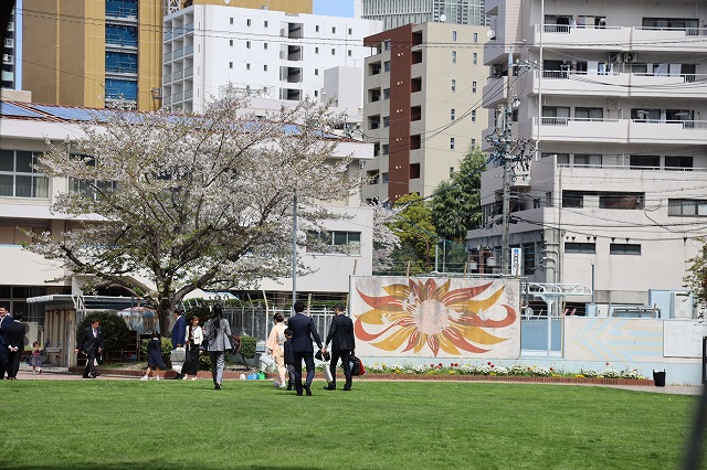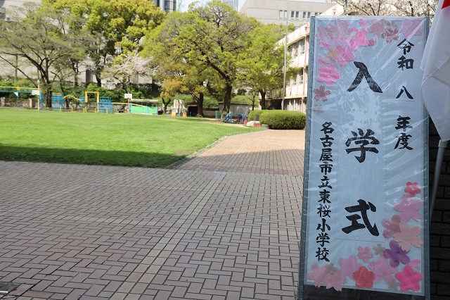 名古屋市立東桜小学校で、4月6日(月)に入学式がおこなわれ、散り始めの桜