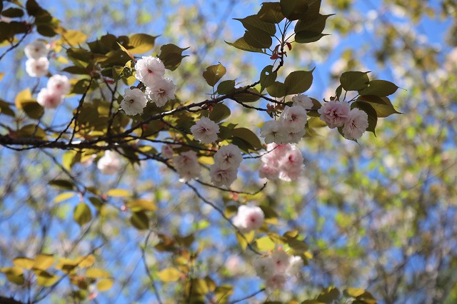 校庭にあった八重桜の孫桜。珍しい品種の普賢像桜は、花の色は咲き始めは淡