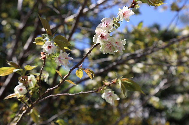 紅色ですが、開花が進むにつれて白色になります。ウコン桜は、花色が淡黄緑
