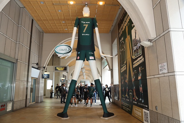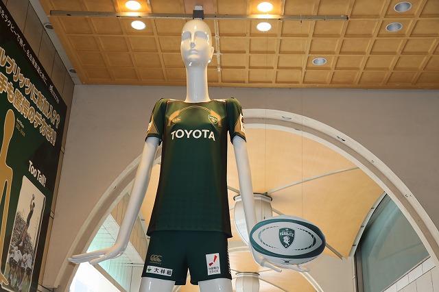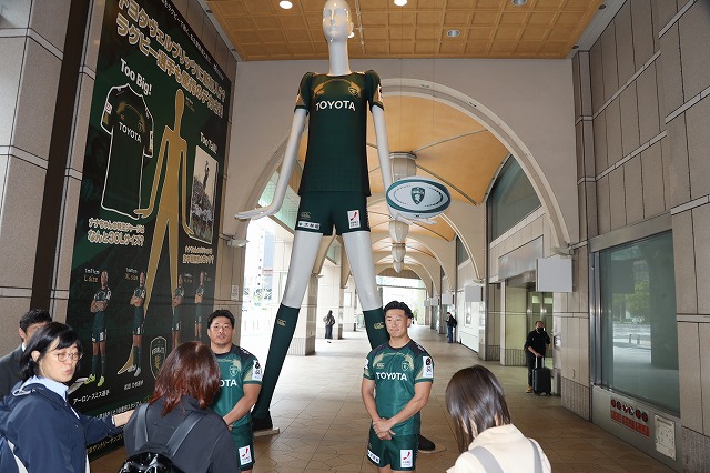 名古屋駅前のナナちゃん人形が、ナナちゃん人形が、ラグビーチーム「トヨタ